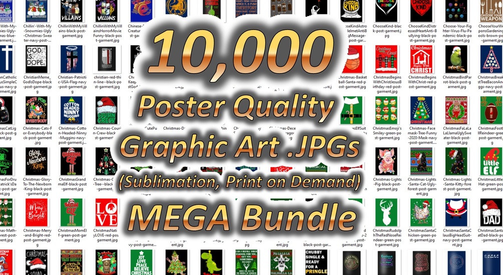 10,000 Original Graphic Art T-Shirt Images (JPG). Bundle for Sublimation & Print on Demand.